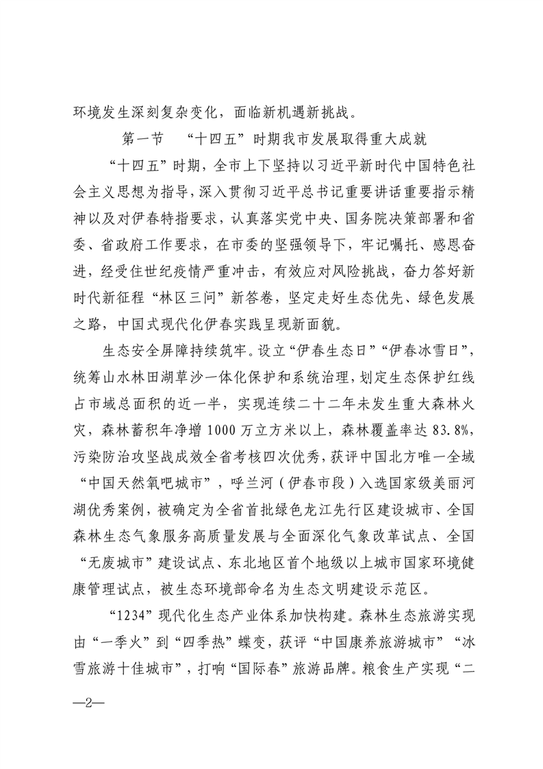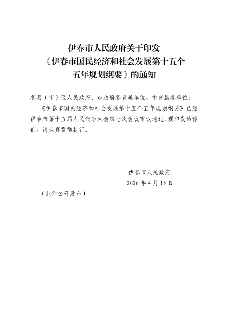 伊春市人民政府关于印发《伊春市国民经济和社会发展第十五个五年规划纲要》的通知
