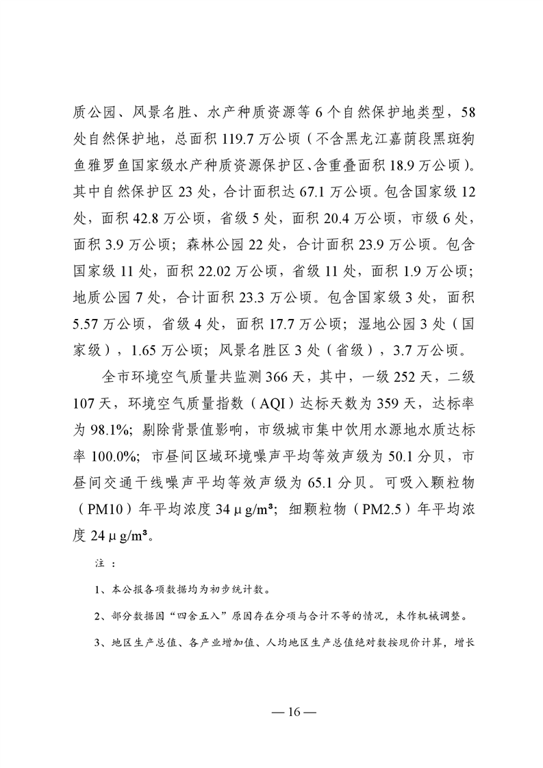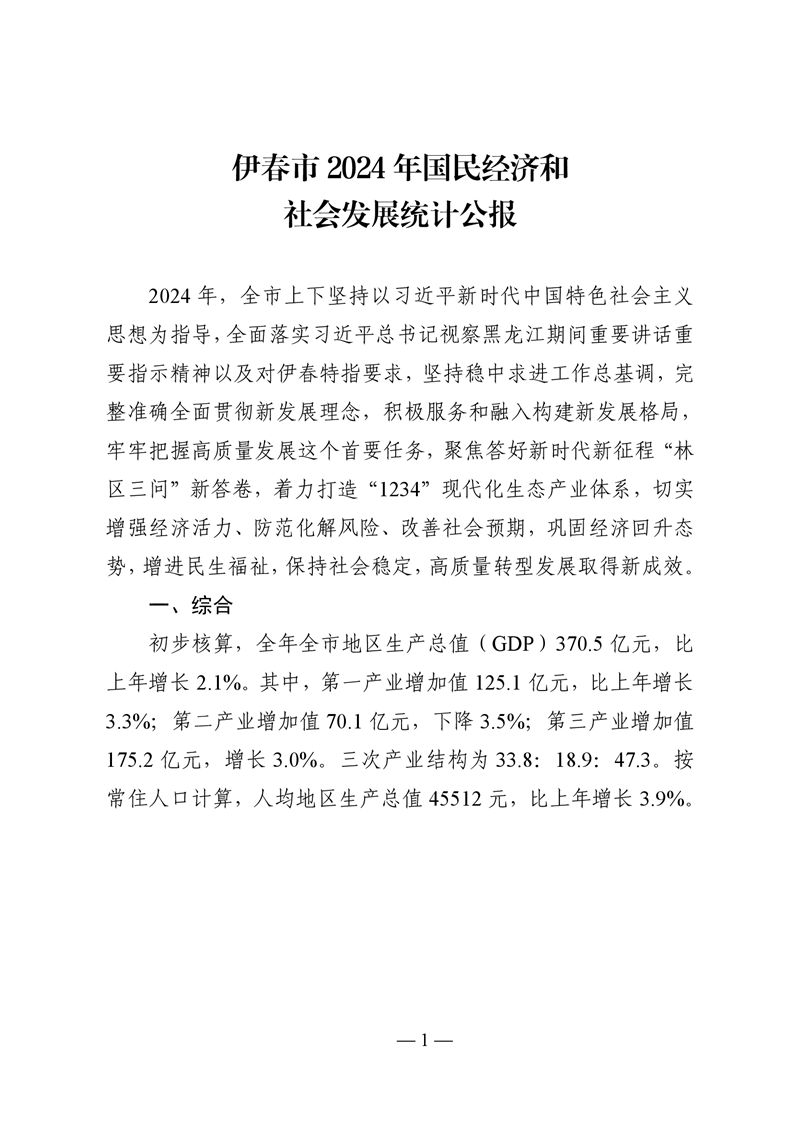 伊春市2024年国民经济和社会发展统计公报