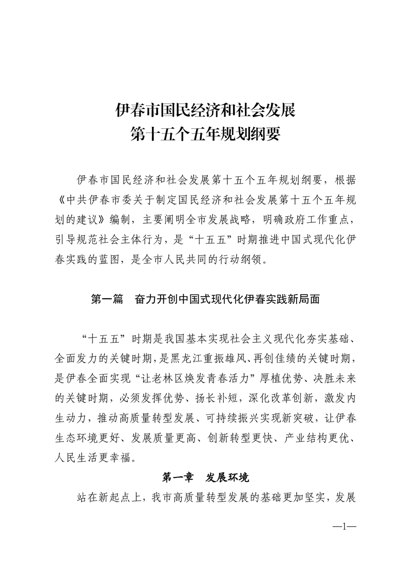 伊春市人民政府关于印发《伊春市国民经济和社会发展第十五个五年规划纲要》的通知