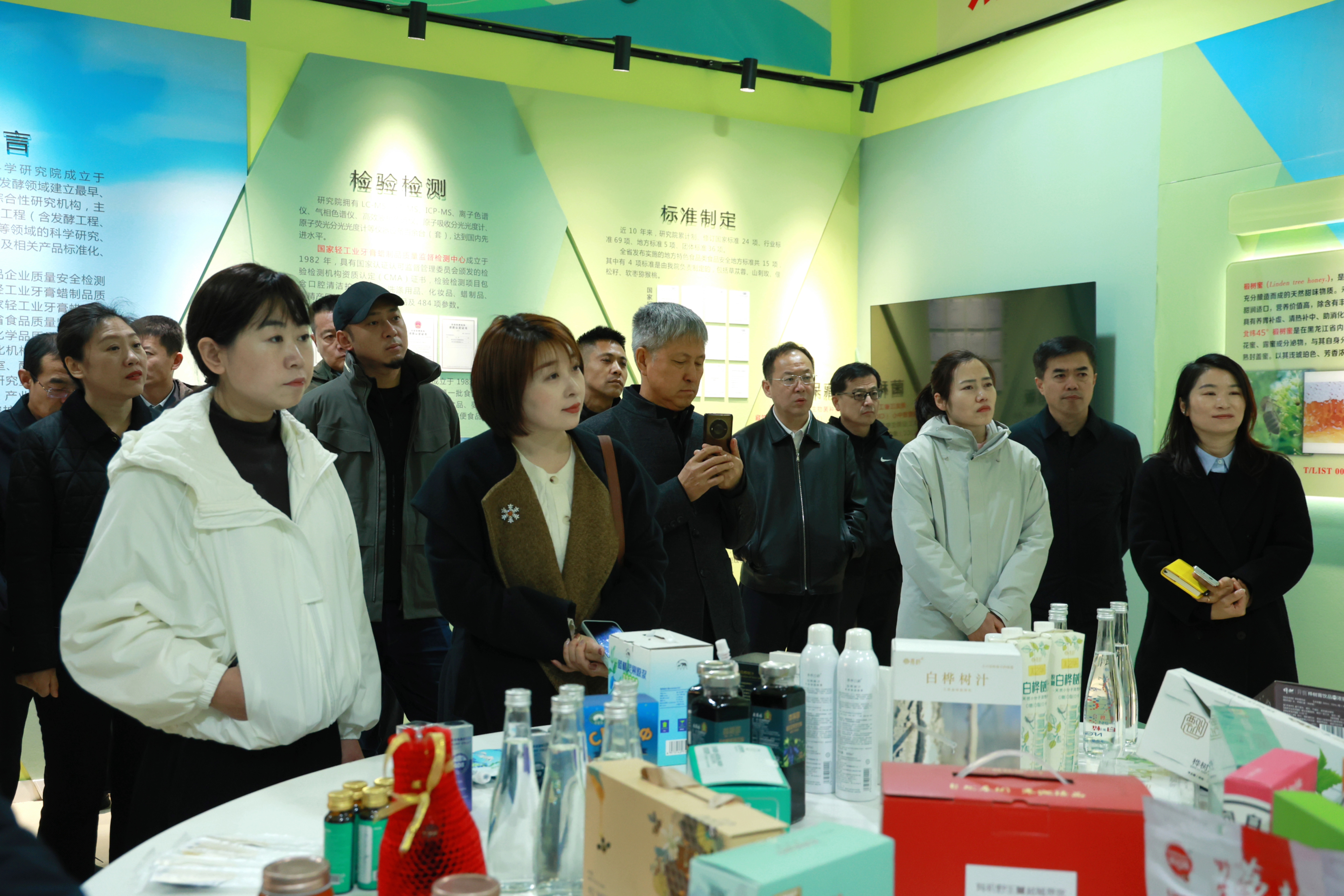 在黑龙江省轻工科学研究院,考察团一行参观了特色功能食品平台成果展厅。省轻工科学研究院作为全省食品研究检验权威机构,与伊春森工生物科技及森林食品企业在白桦树汁系列团体标准制定方面建立了良好合作基础,为我市桦树汁产业标准化、品牌化发展作出重要贡献。相关负责人对桦树汁行业发展现状、产品质量标准制定情况详细解读,与企业进行深入交流、现场答疑。省轻工科学研究院表示将立足伊春产业发展实际,指导企业提升白桦树汁产品质量检测能力,大力推广白桦树汁产品质量标准体系,为促进白桦树汁产业健康可持续发展提供有力技术支撑。