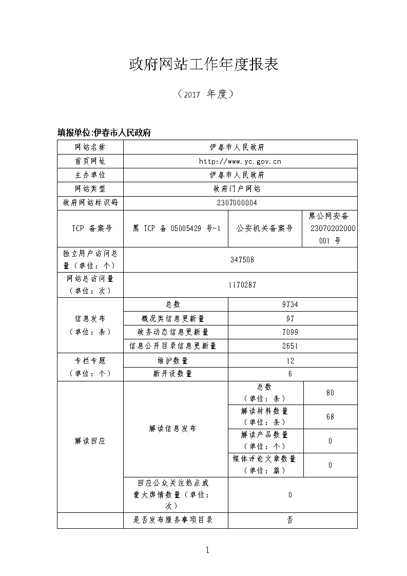 伊春市人民政府网站2017年工作年度报表