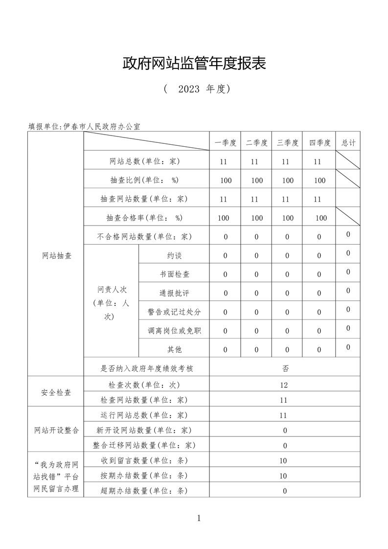 伊春市政府网站监管年度报表(2023)