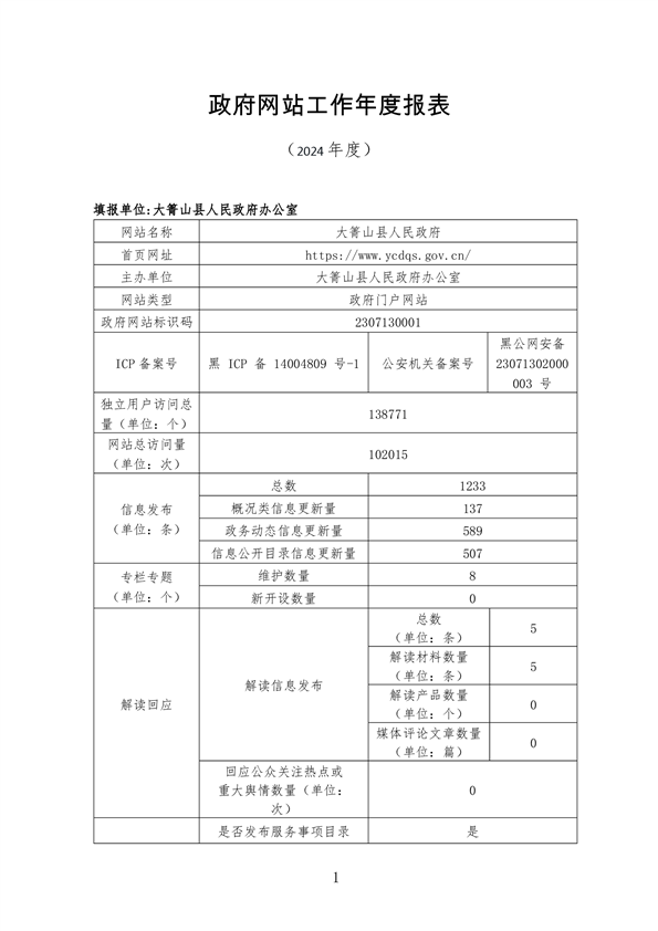 大箐山县2024年度政府网站工作年度报表
