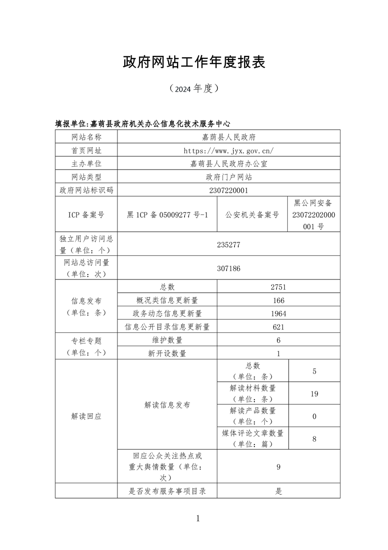 伊春市嘉荫县政府网站工作年度报表(2024年度)