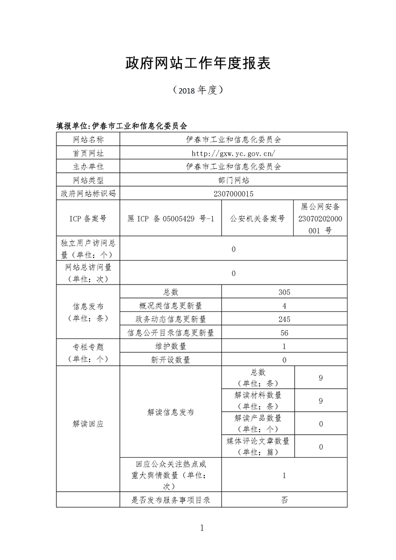 伊春市工业和信息化委员会网站2018年工作年度报表
