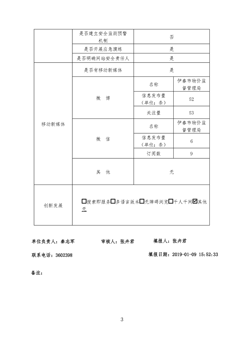 伊春市物价局网站2018年工作年度报表