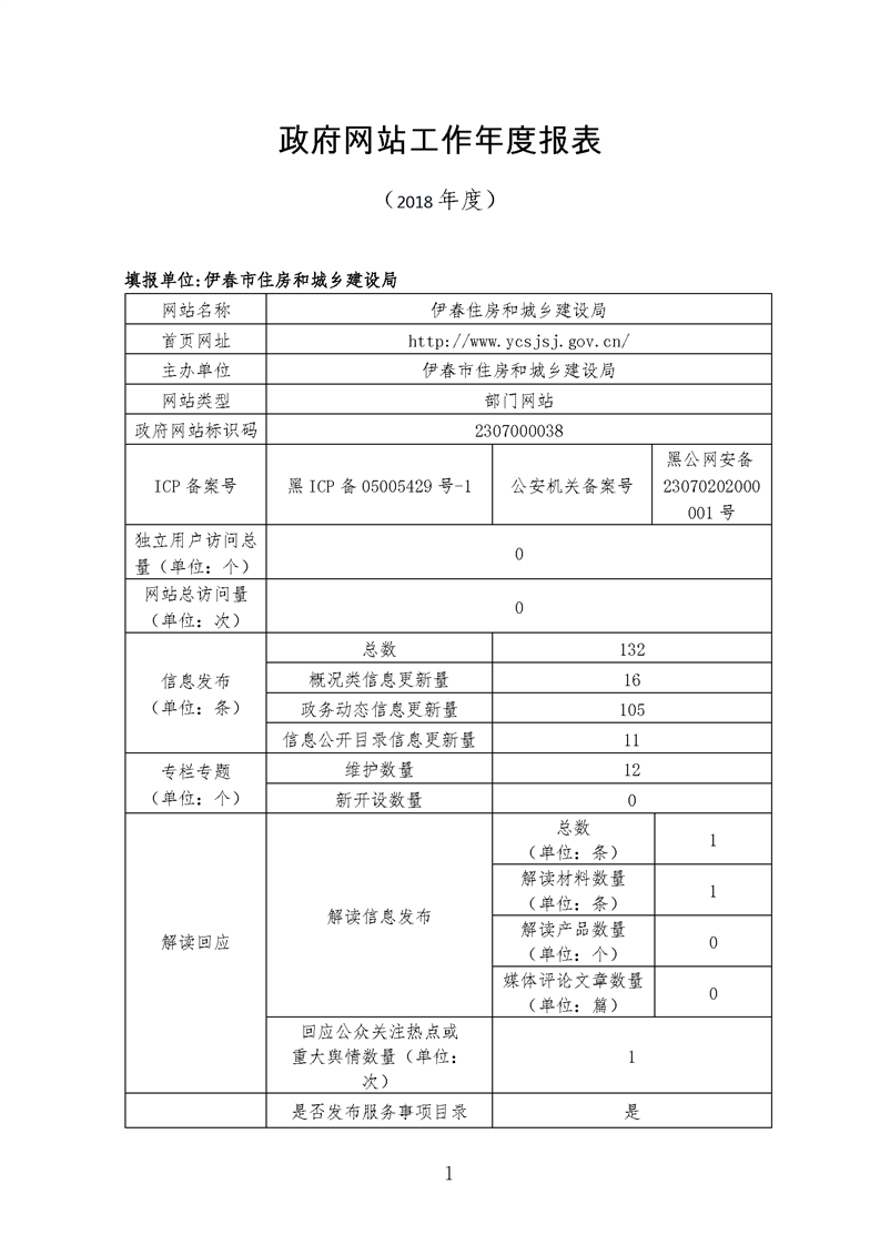 伊春市住房和城乡建设局网站2018年工作年度报表