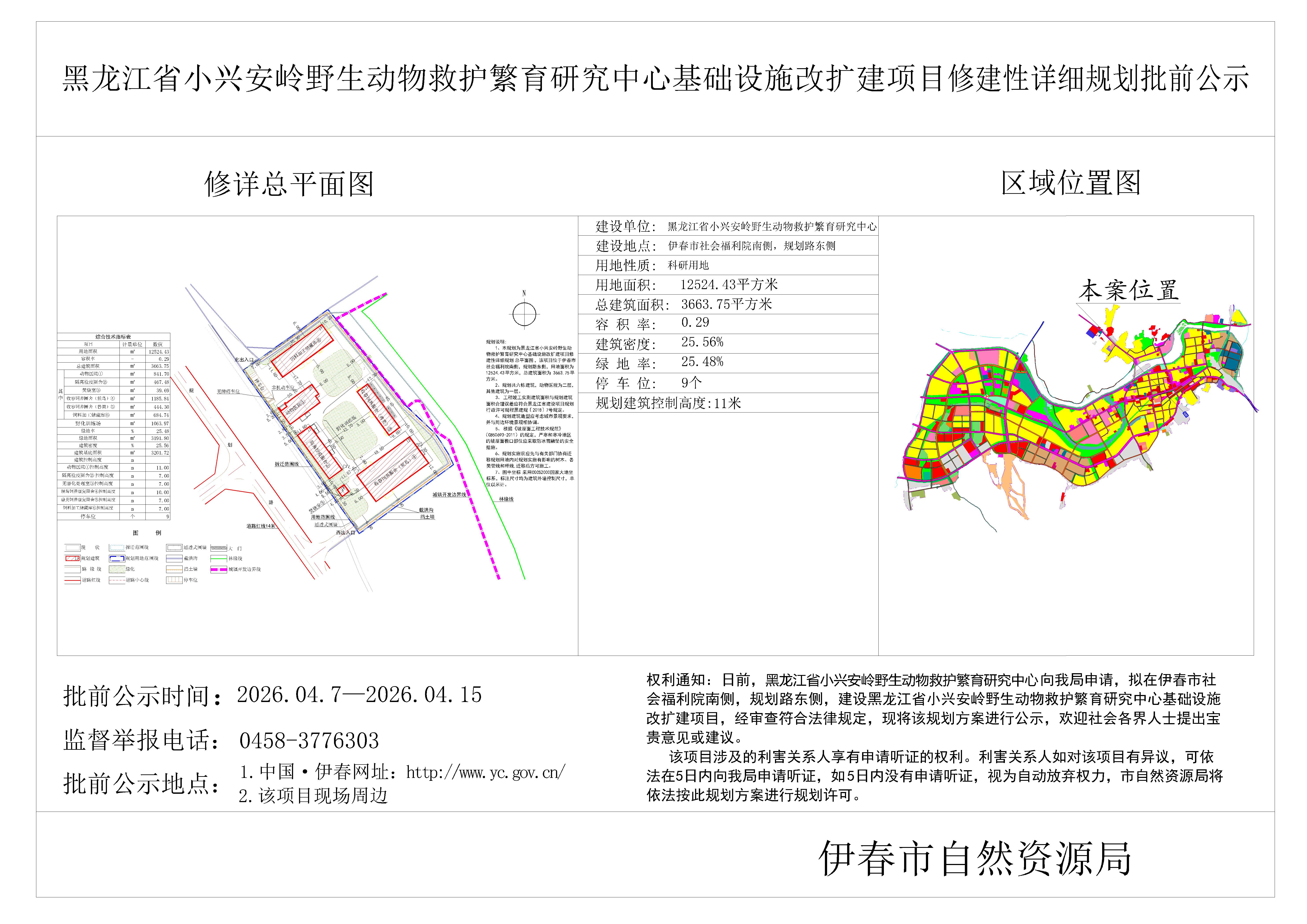 黑龙江省小兴安岭野生动物救助繁育研究中心基础设施改扩建项目修建性详细规划批前公示