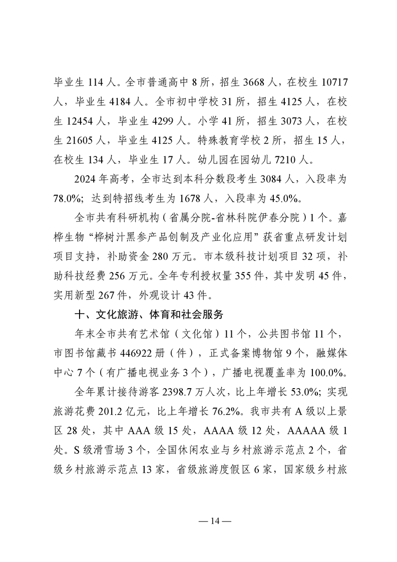 伊春市2024年国民经济和社会发展统计公报