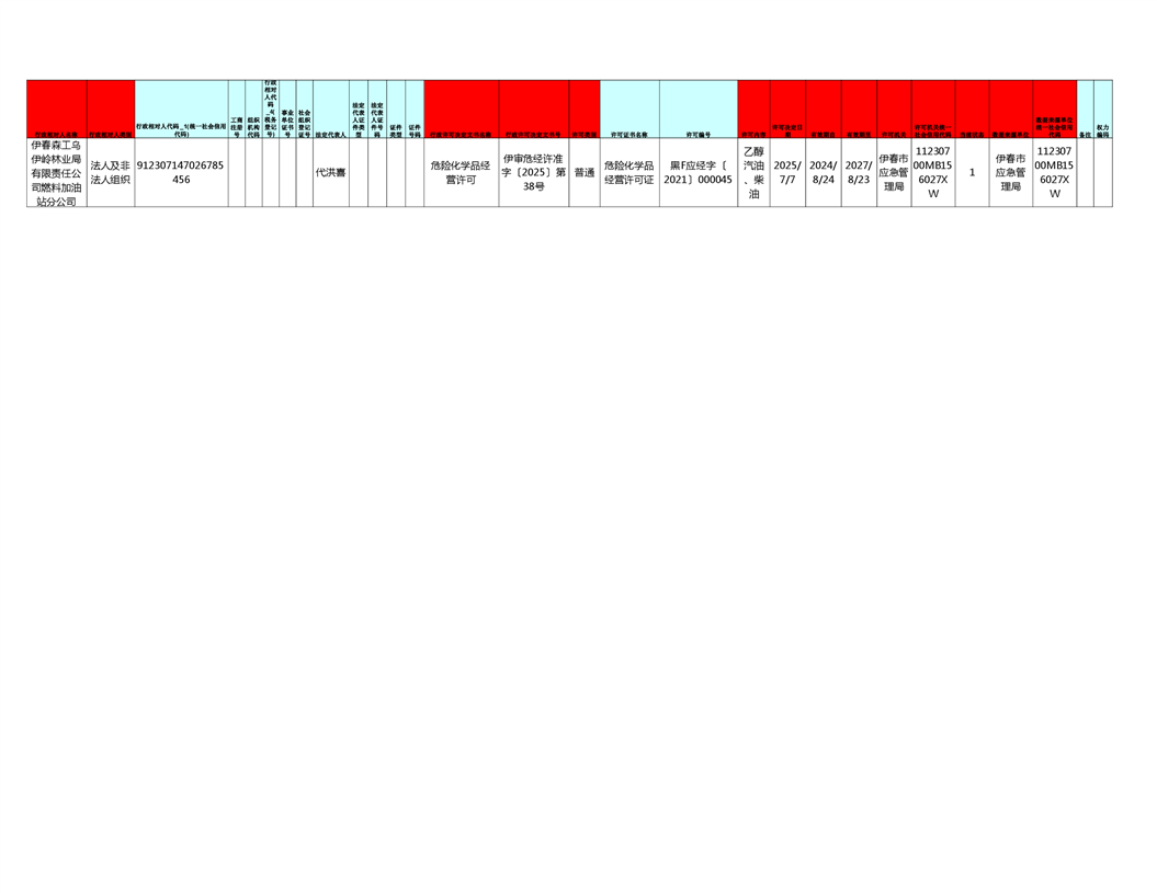 关于伊春森工乌伊岭林业局有限责任公司燃料加油站分公司行政许可的公告