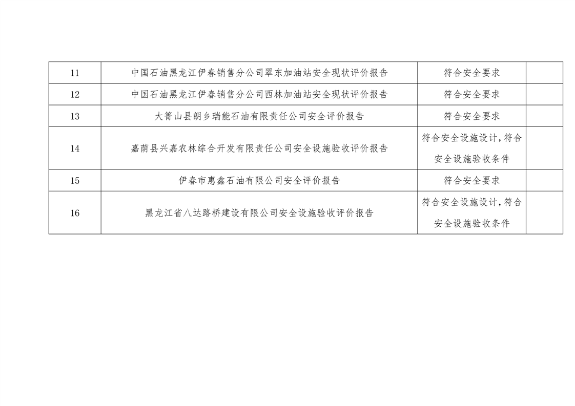 伊春市应急管理局法定安全评价结论