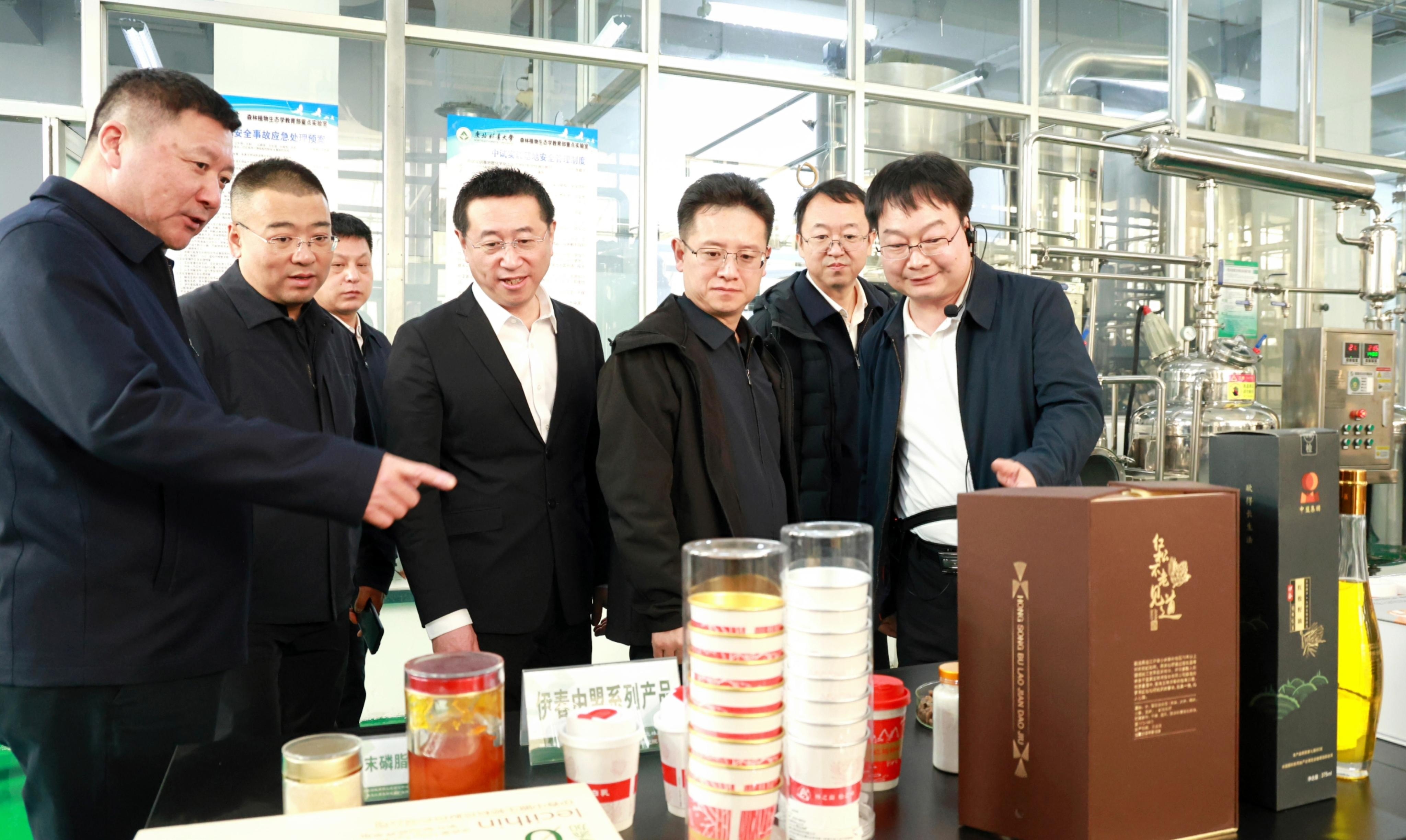 在东北林业大学,考察团一行先后参观了森林生态学教育部重点实验室、森林食品概念验证平台、林木育种全国重点实验室、生态系统大数据研发中心,围绕加强产学研对接合作开展座谈。座谈会上,高见感谢东北林业大学长期以来对伊春经济社会发展的关心支持。他说,伊春当前正深入贯彻习近平总书记重要讲话重要指示和全国两会精神,以科技创新引领产业振兴,加快建设“1234”现代化生态产业体系,因地制宜发展新质生产力,答好新时代新征程“林区三问”新答卷。希望能够以此次考察对接为契机,帮助更多伊春企业精准匹配技术需求,持续拓宽合作领域、丰富合作内涵、提升合作层次,为伊春集聚更多创新人才,引导企业更好发挥创新主体作用,加快推动更多科技成果在伊春转化落地,共同走好生态转型的发展之路。东北林业大学党委常委、副校长李明泽对考察团一行到来表示热烈欢迎。他说,东北林业大学与伊春均是因林而生、因林而兴,产业方向高度契合、合作基础坚实,未来将聚焦技术攻关、成果转化、人才培养等方面,深化双方交流合作,为筑牢祖国北方生态安全屏障、推动伊春高质量转型发展贡献力量。
