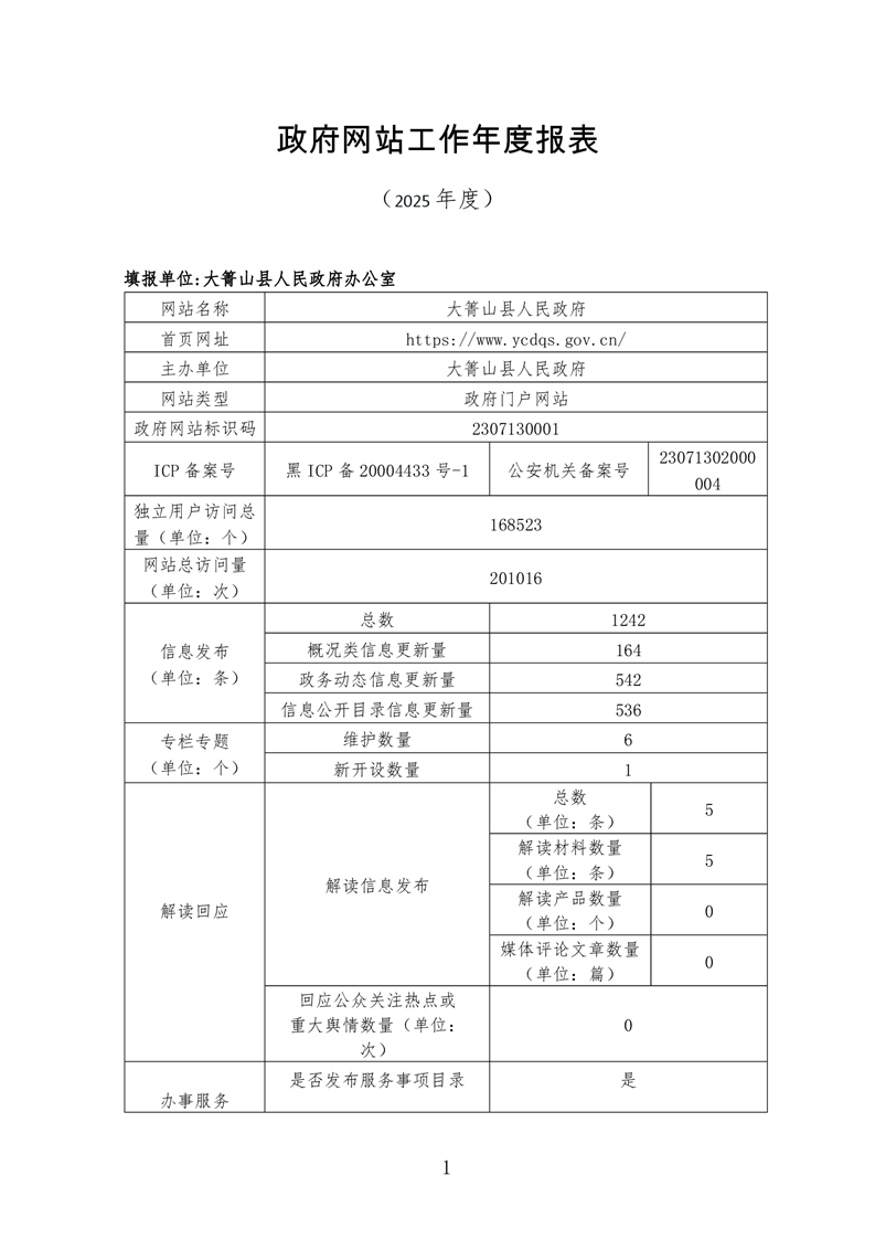 伊春市大箐山县政府网站工作年度报表(2025年度)