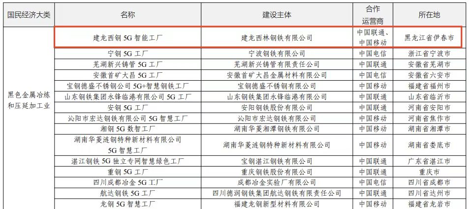 近日,工业和信息化部公布了《2025年5G工厂名录》,覆盖制造业、采矿、能源、轻工等48个行业,共560个5G工厂项目。黑龙江省9个项目入选,我市建龙西林钢铁有限公司、伊春鹿鸣矿业有限公司、中国邮政集团有限公司伊春市分公司3户企业申报的5G工厂项目成功入选,获评企业数量位居全省第二,实现5G工厂遴选以来,我省5G工厂零突破。